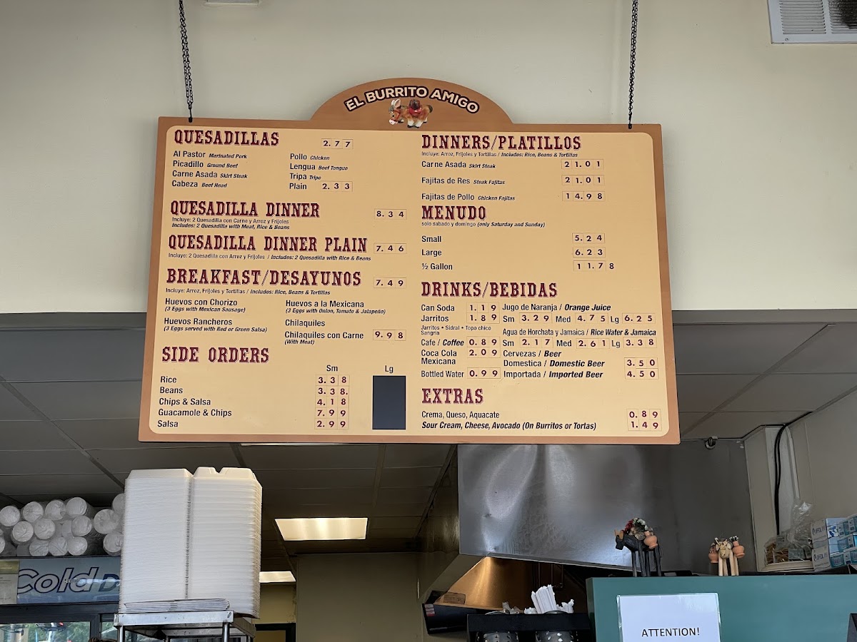 Step inside El Burrito Amigo, and you'll be greeted by a lively atmosphere filled with the enticing aromas of sizzling meats and freshly prepared dishes. The vibrant decor and friendly staff create an inviting space where you can enjoy a casual meal any day of the week.